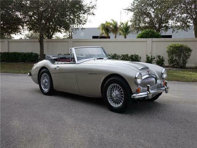 This 1965 Austin-Healey 3000 BJ8 Convertible is the result of a no-expense spared ground-up nut and bolt 100-point rotisserie restoration.The restoration was completed with focus on achieving Austin-Healey Gold Concours standards. Completed in a factory color scheme of Metallic Golden Beige with red trim, the beauty of this Healey leaves one breathless. On the exterior, the pristine brightwork pops against the paintwork and ties in with the chrome stainless 60-spoke wire wheels.
