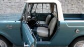 1965 International Scout 80 finished in turquoise metallic with white half-cab. Powered by a 152 inline-4 with 3-speed manual and rare overdrive. Features 4WD, twin-stick transfer case, restored interior, working gauges, and clean body. An original, unmodified classic that runs and drives excellent, with optional full hard top included.