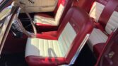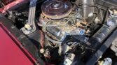 Finished in glossy maroon with a white vinyl top, it features a maroon and white interior, bucket seats, wood steering wheel, and upgraded stereo. With dual exhaust, chrome accents, and factory Snowflake wheels, this Mustang delivers iconic style and strong performance.