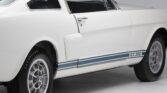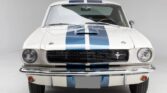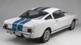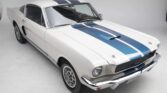 This 1966 Shelby Mustang GT350 is a documented, SAAC-supported example finished in white with blue Le Mans stripes. Powered by a replacement 289ci HiPo V8 from another GT350 and paired with a 4-speed manual, it features Shelby 10-spoke wheels, front disc brakes, rear brake cooling ducts, and extensive historical documentation including Shelby American records.