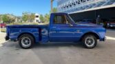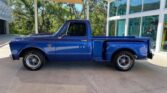Chevrolet C-10 Series Custom Pickup 350-300 horsepower small block Chevrolet engine Automatic Edelbrock chrome open air cleaner Aluminum intake Blue pained valve covers Power steering Power disc brakes 12 bolt rear end LMC gas tank re-location kit Vintage A/C Headman headers Flowmaster mufflers Aluminum Radiator Clean, detailed, and painted engine compartment Custom new blue/white interior Factory