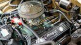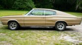This 1967 Dodge Charger features a rebuilt 383 V8 paired with a 3-speed automatic transmission. Finished in gold with red pinstriping, it includes hideaway headlights, chrome trim, and 15″ American Racing wheels. Upgrades include an Edelbrock carburetor, MSD ignition, and Magnaflow dual exhaust. The gold vinyl interior offers four bucket seats, A/C, AM radio, and fold-flat rear seats. Clean, classic muscle with documented engine rebuild.