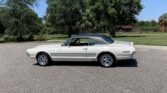 289 Cu In V8 engine, Edelbrock 4 barrel carburetor, dual exhaust with chrome tips, chrome engine dress up package, C4 automatic transmission, A/C updated with R134 refrigerant, power steering, front power disc brakes, Cragar SS Wheels with radial white wall tires, correct Code M Polar White exterior, pinstripe, black vinyl top, working hideaway headlights, dual driving mirrors, sequence tail lights, luggage rack, black leather bucket seat interior, embroidered floor mats, tilt steering column, center console with floor shifter, tachometer dash, Pioneer AM/FM/Cassette radio, wood grain dash trim and steering wheel.