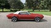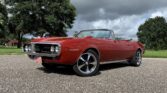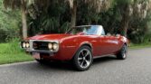 1967 Pontiac Firebird Convertible for Sale. 326 Cu In V8 engine, aluminum intake, Edelbrock 4 barrel carburetor, Doug’s ceramic coated headers, dual exhaust, Griffin aluminum radiator with twin electric fans, power steering, 4 wheel disc brakes with drilled and slotted rotors, 17″ US Mag Wheels with BF Goodrich G-Force Comp 2 Tires, Code R Regimental Red exterior, dual chrome sport mirrors, hood tachometer, white power convertible top, red bucket seat interior, center console with floor shifter, auxiliary engine gauges, 3 spoke deluxe steering wheel, upgraded Kenwood sound system, rubber floor mats. This Pontiac Muscle Car is nicely optioned and a blast to drive with the top down! Get ready for lots of thumbs up as this Classic Firebird hits the road!