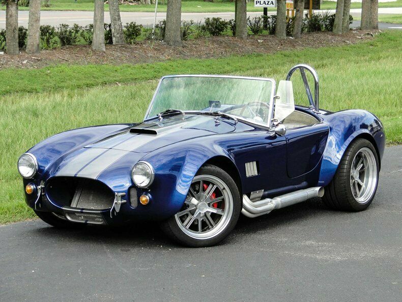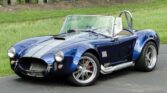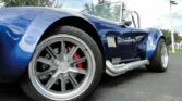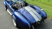 If you are looking for the baddest Cobra around, look no further! This AC Cobra replica is powered by a new Chevy Performance 502 CID V8. That powerhouse is built with AFR 2101 325cc heads, Comp 1.7 full roller rockers, hydraulic roller cam, ARP head bolt kit, MSD 8.5mm wires, MSD Blaster coil, roller timing set, hydraulic roller lifters, Moroso 6.5 quart oil pan, Moroso high volume oil pump and pickup, Moroso dip stick, Edelbrock polished Air Gap intake, Holley Sniper EFI kit, Holley dual sync distributor, Cobra BBC headers and March serpentine belt kit. An SFI bellhousing connect the engine to a Tremec TKO600 5-speed manual with .82:1 overdrive. A RAM flywheel and twin plate clutch has been installed as well as a Wilwood clutch cylinder. Grab the Hurst shifter with white shifter knob and bang through the gears as the big block engines sends that power to a Ford 9-inch HD rear end with aluminum third member assembly and 35-spline axles. As you can see this Cobra has all the power it can handle! But you also have to be able to stop. So, the car has a Wilwood 6-piston big brake kit on the front, Wilwood 4-piston rear brakes and a Wilwood master cylinder. How about handling? Yes, it has that too with QA1 250# rear and QA1 450# front springs with QA1 shocks. This car isn’t just about power though, it has jaw dropping good looks. The classic curves of this AC Cobra replica have been painted in a high gloss Slate Blue with Silver racing stripes. 18″ Vintage Wheels ARE Shelby wheels have been wrapped in Michelin Pilot Super Sport Z-rated radial tires for plenty of grip. Lug nut covers have also been installed for a clean and finished look. No part was overlooked on this build. There are less than 3,300 miles on the build of this car and it is ready for anything you throw at it. The interior is done in a nice gray vinyl to match the stripes and has Stewart Warner gauges installed in the dash. Harnesses have been installed to keep you and your passenger safe while you listen to your favorite tunes from the Pioneer head unit. The trunk is nicely carpeted and houses the Yellow Top Optima battery. This Cobra comes with full documentation for the build in the form of receipts.
