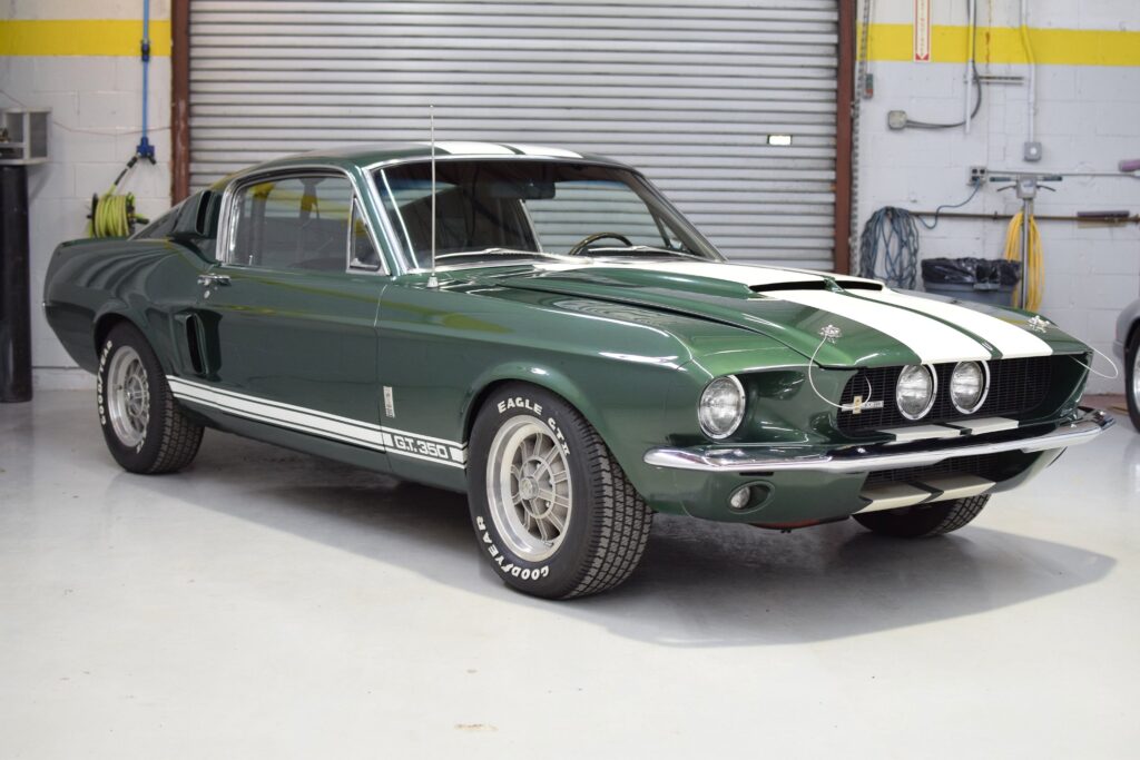 Explore this 1965 Shelby Mustang with iconic features. It includes a fiberglass hood, a signed glovebox door, and a numbers-matching 289ci K-Code V8. This car is a true collector’s piece, with under 61k miles.