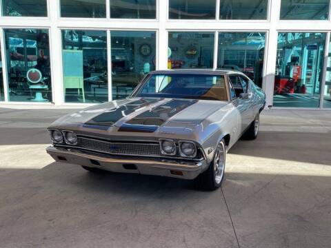 The Malibu is painted silver and has a red bucket seat interior with all the right looks, a 350 engine, Power Steering, 4 Wheel Disc Brakes, Dakota Dash, Tilt wheel, Custom Wheels, and a Custom Auto Sound Stereo. Features 1968 Chevelle Malibu 350 cubic inch small block Chevrolet engine 4-speed transmission Power Steering 4 Wheel Disc Brakes Block, heads, and intake painted orange Performance 4-barrel carb Open element air cleaner Chrome valve covers Red performance spark plug wires…