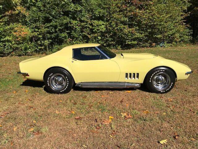 This survivor with 48,000 documented original miles. Original hood was swapped for a 427 hood to make room for the high rise manifold and painted in lacquer in 1970. Safari Yellow with black interior, matching numbers 327/350 w/202 heads, M21 4-speed transmission with 4.11 posi gears, aluminum high-rise intake manifold with a Holly carburetor.