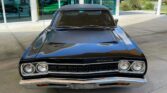 It has a lot of originality to this interior and it looks as it did back when it was new. The stealthy black paint scheme with the black hood and Road Runner scoop really pops and the muscle car lines look super as well as the front and rear chrome bumpers, glass, trim, and it has the right factory stance too with the raised white letter BF Goodrich Radial Ta’s it rides on and mounted on the black and chrome factory styled steel wheels and chrome lug nuts. It has the famous Road Runner cartoon graphics that Plymouth paid $50,000 to Warner Bros.-Seven Arts to use the Road Runner name and likeness from their Wile E. Coyote and The Road Runner cartoons as well as a great looking black Vinyl top.