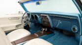 Clean original metal. Dual scooped 400 hood with a hood tachometer. The paint is at least 22 years old and there is no rust or repairs showing. It is straight and fits right. Beautiful, rare factory born color: Aleutian Blue. It is smooth and glossy, there are touch ups and flaws if you look for them. Crystal clear windshield. Bumpers look like they were rechromed. Good original stainless trim, grills, door handles and mirrors. Good original rally ll wheels and trim. BFG tires look great. The white top is in excellent shape. It is a power top that has been disconnected, it lifts manually easily. Weatherstrips were replaced. INTERIOR: Deluxe interior which includes molded door panels and upgraded upholstery. Other features include power windows, remote mirror, tilt wheel, console, clock, speed minder and a gauge cluster. Upgraded with a cassette stereo and speakers in the door panels. Overall, very good door panels, carpet and upholstery. ENGINE COMPARTMENT: Correct casting code 400 motor. Less than 1,000 miles on a rebuild with a hotter cam. It has stock components: valve covers, manifolds, air cleaner etc. Vet complete- heat riser tube, hood insulation, fan shroud etc. Features include power steering, power brakes, air conditioning, cruise control. TRUNK COMPARTMENT: Clean, rust-free original metal with a neat coat of spatter paint. Rally ll wheel for a spare on a new BFG tire. New well liner and weatherstrip. Under the trunk lid and jamb are painted nicely. UNDERSIDE: It has the ride and handling package. Overall, it’s original under this car, maintained as needed. The clean, original California metal is very impressive. The brakes have been redone. They are disc in front, e-brake assembly is hooked up. Dual exhaust system is clean, Dynomax mufflers. Upfront the steering box was replaced, the ball joints look fresh. Looking up at the motor it’s very clean, new high torque starter. Turbo 400 automatic trans. Original ten bolt rear end.