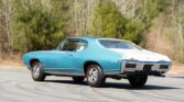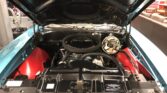 This car is finished in Meridian Turquoise with a white Royal Bobcat–style livery over a refreshed Parchment interior, and its 1971-vintage 400ci V8 has been fitted with period Ram Air II induction components and cylinder heads. Power is delivered to the rear wheels through a Muncie four-speed manual transmission and a limited-slip rear differential with 4.33:1 gears.