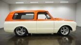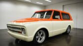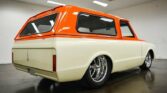 This 1969 Chevrolet Blazer boasts tasteful upgrades like relocated leaf springs, M/T finned valve covers, removable top, LED tail lights, and a custom cowl induction hood. Features include front disc brakes, tubular control arms, shaved door handles, Mooneyes gauges, Edelbrock intake, and ceramic-coated long tube headers. Finished in custom paint with a chrome tilt steering column and more.