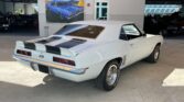 Striking 1969 Chevrolet Camaro SS 454 Tribute in Dover White with black stripes. Powered by a built 454 big block V8, paired with an M21 4-speed and 12-bolt rear. Features Weiand intake, MSD ignition, headers, and dual exhaust. Clean black bucket seat interior with console and factory gauges. A powerful, show-ready muscle car with aggressive style.