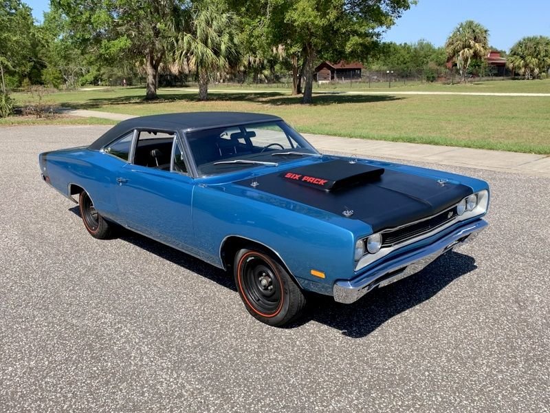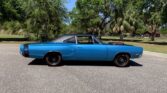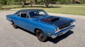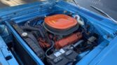Real Super Bee Body. 440 High Performance engine, 6 pack style carburetors, electronic ignition, coated headers, dual exhaust with crossover pipe, frame connectors, highly detailed engine bay, power steering, performance bell housing, a833 4 speed manual transmission, 8 3/4 rear end, beautiful blue exterior, black stripe package, lift off satin black fiberglass hood, steel wheels with radial branded Red Line Tires, black vinyl top, driver’s chrome sport mirror, beautiful undercarriage, black bench seat interior, Hurst Pistol Grip Shifter, detailed dash, original style radio.