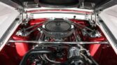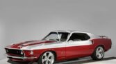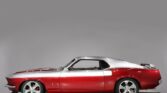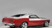 This 1969 Ford Mustang Shelby-inspired restomod is a one-of-a-kind show car featuring custom two-tone Electric Currant Red and Leisure Travel Silver paint with a thin pinstripe and glass-like polish. The body is laser straight, with smoothed fenders, scoops, molded rear quarters, shaved emblems, and remote-operated doors and trunk. The lowered stance on 18-inch Boyd Coddington wheels with wide rear performance tires completes…