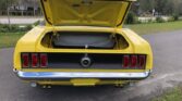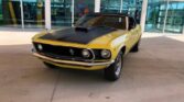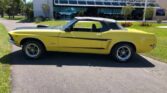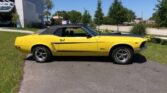 Features 1969 Mustang convertible F-Code 302 cubic inch V8 engine that had 200 horsepower 310 ft. lbs of torque Mustang Powered By Ford finned aluminum valve covers Mustang Shaker Hood air cleaner system Modified electronics Factory cast iron exhaust headers Dual exhaust system Automatic transmission. Period correct black interior Twin front black bucket seats Matching rear seat Molded black door panels Black floor mats and carpet AM/FM pushbutton radio Center shifter console with the chrome T-handle shifter on the floor Woodgrain dash Wood steering wheel Bright yellow paint Dual headlights Dual mirrors Shaker hood scoop Blacked out grill Chrome bumpers front and rear Black convertible top Flat black painted hood Black side c-stripes Custom grey/polished sport 5-spoke mag wheels Cooper Cobra Radial GT white-letter tires Mechanical According to the Vin number our awesome 1969 Mustang convertible was built with the optional 302 cubic inch V8 engine that had 200 horsepower from the factory with 310 ft. lbs of torque. Ours is decked out with performance and appearance items like the Mustang Powered By Ford finned aluminum valve covers, Mustang Shaker Hood air cleaner system, modified electronics, factory cast iron exhaust headers flowing the exhaust gasses back to the dual exhaust system, and connected to an automatic transmission.