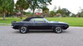 Numbers matching 350 Cu In V8 engine block, Quadra Jet 4 barrel carburetor, dual exhaust with Magnaflow Transverse Muffler, TH350 automatic transmission, power steering, front power disc brakes, 14″ Pontiac Rally Wheels with Cooper Cobra white letter radial tires, refinished in a beautiful triple black color scheme, scooped hood, rear deck spoiler, dual chrome sport mirrors, power canvas convertible top, black custom knit vinyl weave bucket seat interior, center console with floor shifter, AM/FM radio, Classic Auto Air system. This 1969 Firebird Convertible turns heads everywhere it goes! The 1969 is one of the most sought after years for the F-Body Line of GM Cars, especially a Convertible. Don’t miss your chance to own and enjoy this beauty!