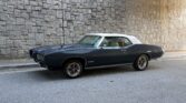 We are pleased to offer this 1969 Pontiac GTO Convertible, a remarkably correct and well-documented car with service records and ownership history to new. Presented in its original colors of Liberty Blue over Ivory White, this is well-optioned example with power steering, power disc brakes and factory air conditioning. Correct to its original specification aside from a transmission swap from the original automatic to a more desirable four-speed manual. Numbers-matching 400 cubic inch V8. Highlights of recent service work include a full steering, suspension and brake system overhaul (new power steering pump, steering gearbox, rag joint, tie rod ends, all new bushings, repacked wheel bearings, ball joints and Bilstein shocks, new brake lines and hoses, master cylinder and booster plus a full brake job). The chassis feels great — steering is tight, brakes stop the car confidently and there are no squeaks or rattles over bumps. The original numbers-matching engine was removed and re-sealed, then fitted with ram-air high output exhaust manifolds, a new (but correct) Rochester carb and a new engine wiring harness (plus an aluminum radiator). A correct Muncie four-speed manual transmission with a Hurst shifter and all new linkages was professionally installed — including the fully-functional reverse shift interlock in the steering column. The rear axle internals were renewed with 3.31 limited slip gears (better suited to the four speed). Stacks of receipts from Ames and other suppliers for this recent work also accompany the sale.