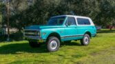383ci V8 Crate Engine; 3-Speed Automatic; 2-Speed Transfer Case; Repaint in Medium Green; White Removable Hardtop; Tan and Teal Tartan Interior; Locking Front Hubs; Edelbrock Cylinder Heads; Holley Sniper Fuel Injection; Deaver Springs; Air Conditioning; Protect-O-Plate; Recent Service Records