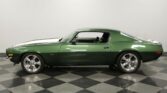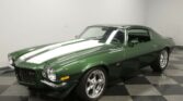 1970 Chevrolet Camaro with an RS-style split bumper front end and some Z/28 style. But just one mere glance at this one, and you know there have been some serious investments and upgrades. Sleek green paint, a fresh but vintage-style interior, six-speed transmission, four-wheel disc brakes, performance suspension, and a powerful LS3 motor – they all tell you this is the coolest Camaro restomod you can get your hands on right now.