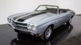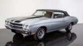 This restored 1970 Chevelle SS396 Convertible comes finished in factory code correct 14- Cortez Silver with Black hood & deck lid stripes over 756- Black vinyl bucket seat interior with matching Black convertible top. Factory options include full numbers matching L34 396ci 350 horsepower Turbo-Jet V8 & M20 4-speed manual transmission, Super Sport package equipment, F41 special performance suspension, JL2 vacuum power disc brakes, power steering, Rally gauges with dash tachometer & electric clock, original 3.31 Posi-Traction 12-bolt…