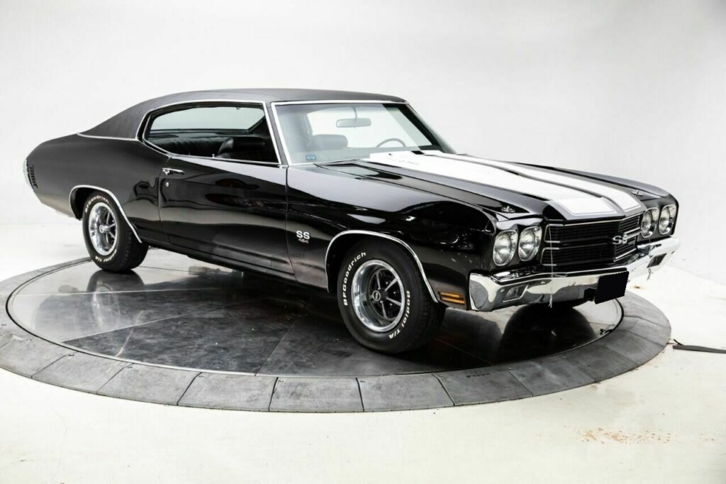 1970 Chevelle SS This may well be the most sought after Muscle Car from the day, and it is arguably the most desirable color combination out there. It is powered by a very strong, detailed 360+ Horse NOM 454 CID Turbo Jet V-8 Engine with an Edelbrock 4 BBL carb and intake, muncie 4 speed, with a 12 Bolt Positraction with 4.10 Ratio Gears. It has the desirable Cowl induction Hood, and Power Disc Brakes in front and rear drum. Optional Safety Guard color keyed Deluxe GM Seat Belts front and rear. Your peepers are aided by Soft Ray Tinted Glass in all Windows . The interior is black bench seat and carpets. There is a drivers side outside mirror plus Day,Night Rear View Mirror. The Hurst 4 speed shifter is coming at you out of the floor. Your pulse will quicken when the Performance Tuned Dual Exhaust hits its stride. It rolls about on chrome magnum SS 5 spoke Wheels and Center Caps and an excellent set of matched 225 60R14 front and rear BFG TA Raised White Letter Radials. This one is finished In Mirror Gloss Tuxedo Black with Black Vinyl top and White Hood and trunk stripes. Arlington Texas built car that appears to have original floors and quarters. Specifications NOM 454 CID Turbo Fire V8 360+HP Easy shifting Muncie 4 speed transmission with Hurst shifter Working ZL2 Steele Cowl Induction Hood with pins Posi 12 Bolt Rear End with 4.10 Gears F41 Special Performance Suspension Components JL2 Power Assisted Front Disc and rear drum Brakes Finished in Tuxedo Black with White Hood and Trunk Stripes Correct black Bench Seat with deluxe Seat Belts Front and Rear 7000 RPM tach with 5500 redline. This is a highly coveted Chevelle 454SS ready to cruise and enjoy today