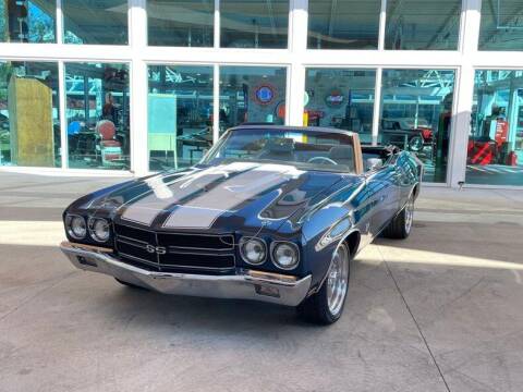 454 cubic inch monster factory big block engine, 3-speed automatic transmission, 12-bolt read end, and a dynamite looking color combination of blue paint, blue interior, and a gorgeous new white convertible top! It is not often that you will find a 1970 Chevrolet Chevelle SS 454 with those features and a blue bucket seat interior that has a lot of originality too and looks as it did when it was new. Chevelle's are immensely popular cars and none…