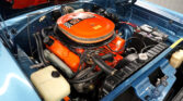 Power Brakes. Power Steering. 15 Inch Wheels. 150mph Speedometer. 3 x 2 Barrel Carburetor Setup. 4.10 Gear Ratio. 440 Six-Pack Engine. 7-Blade Cooling Fan. BFGoodrich Radial TA Tires. Blue Carpeting. Blue Dash. Blue Door Panels. Blue Headliner. Blue Vinyl Interior. Bright Wheel Lip Moldings. Bright Window Trim. Center Console. Chrome Exhaust Tips. Chrome Front and Rear Bumpers. Correct Color. Dana 60 Rear End. Dark Blue Metallic Exterior. Dark Blue Metallic Interior. Driver and Passenger Side Mirrors. Driver Side…