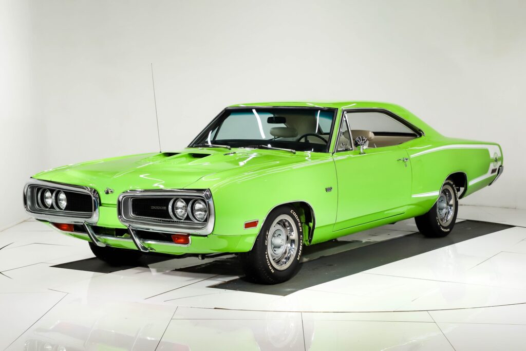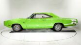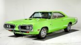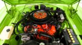 This is a Killer Bee! The colors are a knockout and it was born this way according to the trim tag. Clean metal body, no rust or damage. The panels are square and flush. The bulged hood, no vinyl top and the white C-stripe really add to its beauty. The paint is glossy. All the chrome and stainless trim looks great. Windshield was replaced. Grills and tail panel are in excellent shape. Jambs are painted nicely. Weatherstrips were replaced. 15×7 Rallye wheels are in excellent shape. INTERIOR: Door panels were replaced, metal trim repainted. The dash area is very clean, not cut or broken. Rebuilt factory radio and 8-track player with optional rear speakers. New glovebox liner with owner’s manual. New carpet and embroidered mats. Complete set of seatbelts. Seats were reupholstered. Excellent headliner, visors, mirror and working dome light. ENGINE COMPARTMENT: #s match 383-335 hp Magnum motor. All the components look stock and it’s detailed up real nice. It looks complete including heat riser tube, both horns, washer bottle and brackets. It features power brakes. Clean metal engine bay painted to match the car. The fender tag is attached, the vin number on the core support matches. TRUNK COMPARTMENT: Solid metal that’s all painted green. It has a Rallye wheel spare and a jack assembly. The rubber mat is cracked, weatherstrip was replaced. UNDERSIDE: All the components were removed from the bottom of the car. The shell was flipped on a rotisserie so the underbody could be prepped and painted. It appears to be dry original metal floors and frame rails. The bottom was painted Sublime Green. The suspension and steering were completely rebuilt. The brakes were rebuilt, has disc in front. E-brake assembly is hooked up. Dual exhaust with Dynomax mufflers and correct chrome tips. Fuel system was replaced including the tank and fuel line. Looking up at the motor it is clean, the matching vin is stamped by the oil pan. The original 727 Torqueflite automatic has a finned aluminum pan. Rebuilt driveshaft connects to a 8 3/4 rear end with 3.23 Sure Grip gears.