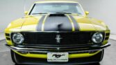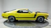 This 1970 Ford Mustang Boss 302 is powered by a numbers-matching Boss 302 4V small block paired with a 4-speed manual transmission. Finished in original Ford Yellow (#3470-A) with black interior, the restoration quality and materials are superb. Factory options include a Traction-Lok differential, rear window slats, rim-blow steering wheel, front and rear spoilers, and Magnum 500 wheels with Goodyear Polyglas tires. One of only 3,820 built with this paint and trim, this Boss 302 is a rare and highly collectible classic Mustang.