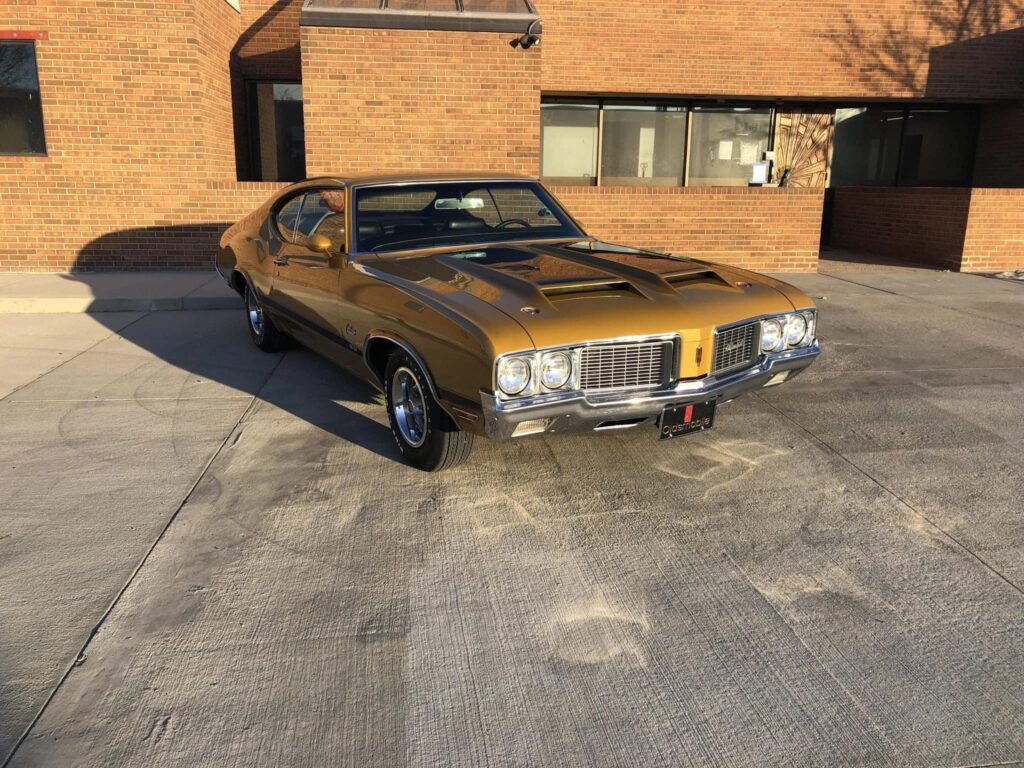 This car was ordered with the W-31 package and is powered by a numbers-matching 350ci V8 paired with a three-speed automatic transmission. Features include 14″ Super Stock II wheels, front disc brakes, dual hood scoops, and a push-button radio. The body was refinished in its factory shade of Nugget Gold Metallic (53) during prior ownership according to the seller. Super Stock II wheels with polished trim rings wear vintage-style Firestone white-letter tires fitted during current ownership. Rated to…