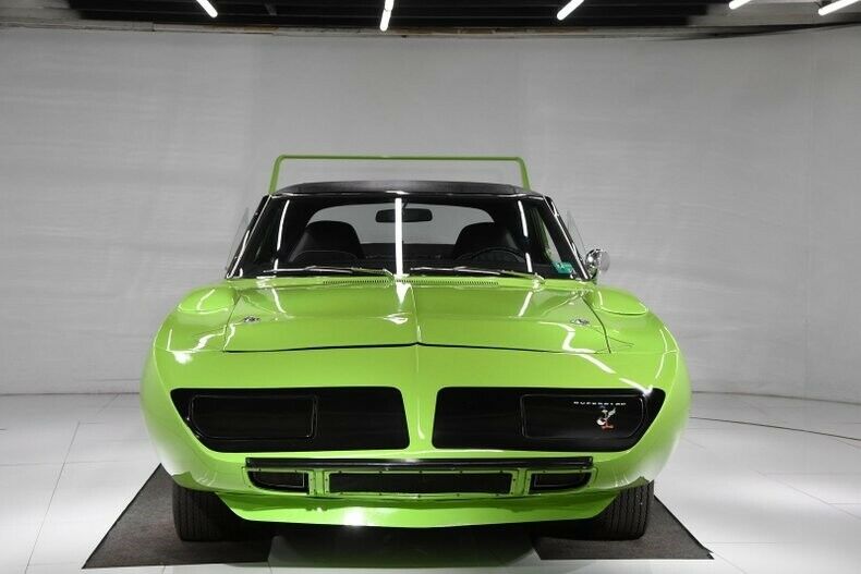 EXTERIOR: The whole body is straight and smooth, has a very polished Sublime green paint. This is the color it was born. The doors, fenders, cowl and trunk fit very nicely. The nose cone is in excellent shape, vacuum headlight doors work. Jambs are clean, weatherstrips were replaced. Vinyl top is brand new. Rear bumper is rechromed. It has reproduction Polyglass GT tires on new looking 15 inch rallye wheels. The whole concept behind the Superbird was aerodynamics.…