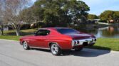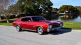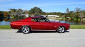 1971 Chevrolet Chevelle Restomod for Sale. GM 454 HO crate engine factory rated at 438 horse power (GM Part #12568774 with receipt of purchase), aluminum intake, 4 barrel Edelbrock Carburetor, color keyed engine bay, power steering, A/C, front disc brakes, 700R4 overdrive transmission with shift kit, headers, dual exhaust with crossover pipe, 12 bolt rear end, rear sway bar, 17” Torque Trust II Wheels lowered suspension, Sundown Red Pearl exterior, Cowl Hood, upgraded headlights, chrome sport mirrors, SS…