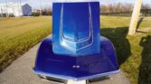 This 1971 Chevrolet Corvette coupe is finished in blue over a black interior and is powered by a numbers-matching 350ci LT-1 V8 mated to a numbers-matching Muncie M-20 four-speed manual transmission. Equipment includes a Holley carburetor, LT-1 hood graphics, removable T-top roof panels, pop-up headlights, a removable rear window, a chrome luggage rack, Rally wheels, a push-button radio, and an Astro Ventilation system.