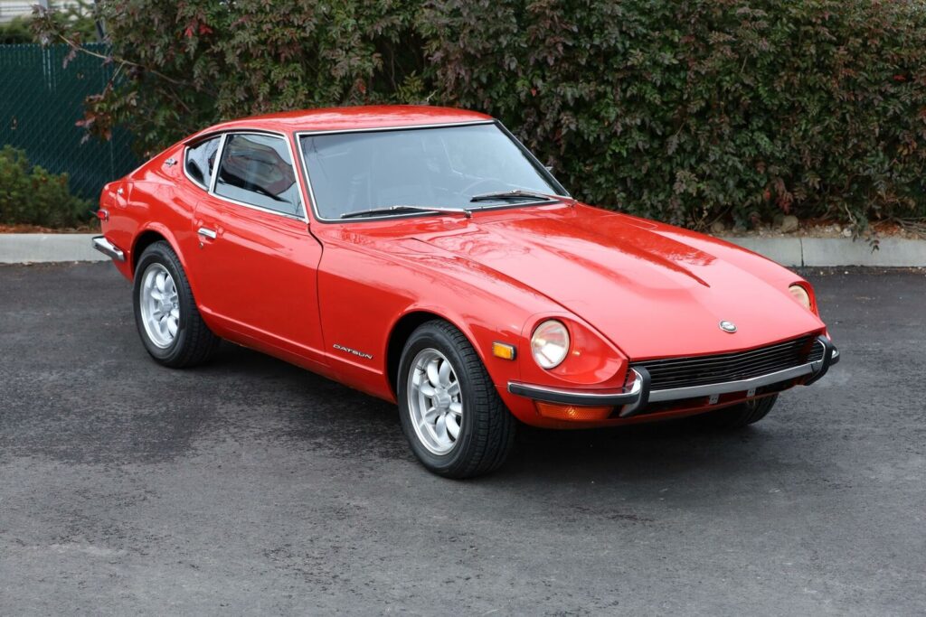 Refinished in its original 905 code Red paint, this 1971 240Z has been gone through thoroughly in the last few years. Outside, the car was sanded and repainted following some corrosion repair in the rear half. Shining brightly now and sitting on 15” Rota wheels, the car shows nicely. During the refreshing process, the 2.4L engine was removed and resealed, the transmission was rebuilt along with the rear differential. More recently the brakes and suspension have been gone through including a new brake master cylinder being installed, rebuilt brake booster, and new dampers and bushings. Inside, the interior has been completely gone through with new seat covers, black carpet and a new dash. The wood style steering wheel and shifter knob add a nice subtle touch, and there is a period correct cassette player installed.