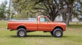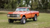 Finished in striking Burnt Orange, this K1500 commands attention while staying true to its heritage. Inside, the reupholstered interior features two-tone Grey vinyl and cloth inserts with period-correct detailing.