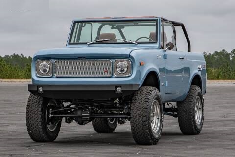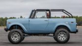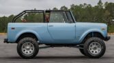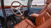 Meticulous chassis and bodywork done in-house is the ideal canvas for its PPG Custom Paint finish in Brittany Blue. Refinished exterior trim including door hinges, exterior handles, grille, badges, and bezels give the Scout the aesthetics of a brand-new vehicle. The burning question, though: “What’s under the hood?” For your excitement and driving pleasure, we’ve equipped this ’71 Scout 800B with a slight upgrade – a 430-hp 6.2-liter LS3 V8. Paired with a 4L60E auto transmission, an Atlas transfer case, and 3” performance exhaust, it’s in a class of its own. The interior is built up with custom touches including hand-stitched upholstery, Vintage Air A/C system, a Velocity Exclusive dash and an 8-point roll cage into the frame and decked it out with LED dome lighting.