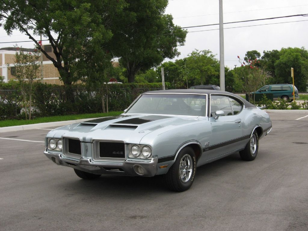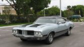 1971 Oldsmobile 442-W-30 Warehouse find. Stored 23 years. Silver Exterior/Black Interior. Black vinyl top. 455-V-8 Turbo 400 O-W Automatic Hurst Dual Gate transmission, original matching numbers, engine and transmission. 65,659 miles. Loaded with options, rally wheels, PS, PB, AC, AM-FM-8track. W-25 forced air induction hood, spoiler, posi has special H-Heads and W-30 manifold, Motor was rebuilt, runs very strong. One repaint about 30 years ago. Stored inside for many years. Doesn’t have broad cast sheet, the previous owner lost it