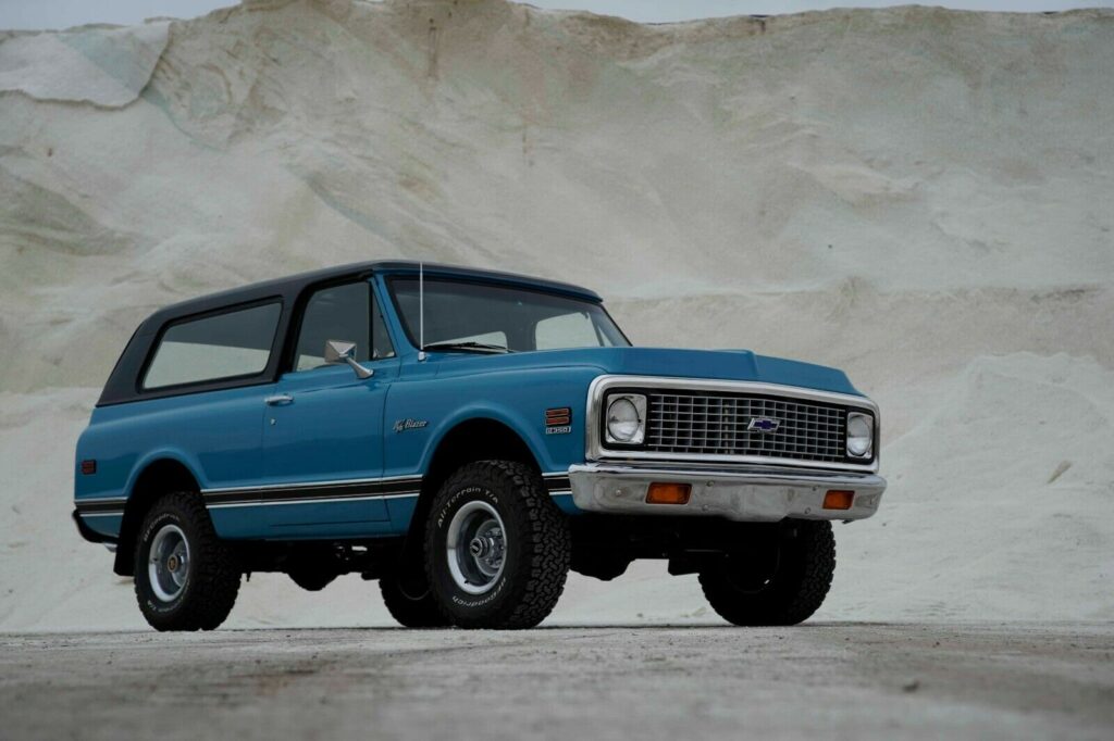 We have just added to our extensive exotic car inventory a beautiful K/5 Blazer 4X4.Fresh comprehensive restoration with no expense spared. Finished in a stunning Medium Blue with a Satin Black Hardtop and Black and White Houndstooth Interior. Features include a 350ci V8, Turbo Hydra-Matic Transmission, Bucket Seats, Air Conditioning, Gauge Package, Removable Top, AM FM Radio, Front Wheel Lock Hub, Moldings Custom, 3-Person Rear Seat, HD Shock Absorbers, Power Steering, and Houndstooth Trim.