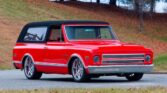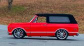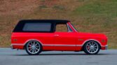 From the Eddie Vannoy Collection * Custom Restoration & Stunning Build * 1967-Style Front End * Beautifully Detailed Engine Compartment * LS3/525 HP Engine * Velocity Stacks * Individual Throttle Bodies * Electronic Fuel Injection * 4L60E Overdrive Automatic Transmission * Air Conditioning * Custom Red Paint with Black Removable Hardtop * Custom Leather Interior * Billet Steering Wheel on Tilt Column * Dakota Digital Gauges * Reclining Front and Rear Bucket Seats with K/5 Embossed on Rear Seat Backs * JVC AM/FM/CD Bluetooth Stereo with Subwoofer * Wilwood 4-Wheel Disc Brakes * 22-inch Rear and 20-inch Front Billet Specialties Wheels * Michelin Pilot Sport Tires * Matching Surfboard with Blazer Mural