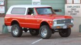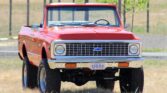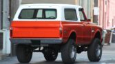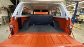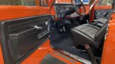 This car is powered by a replacement 5.3-liter Vortec V8 paired with a four-speed automatic transmission and a dual-range transfer case. Equipment includes an Off Road Design suspension, 18″ wheels, Flowmaster exhaust, an aluminum radiator, air conditioning, cruise control, Dakota Digital gauges, and a Bluetooth stereo. A subsequent refurbishment is said to have included rust repair, replacing the side sills, patching the quarter panels, repainting the body in Viper Orange, and reupholstering the interior in black vinyl with…