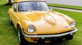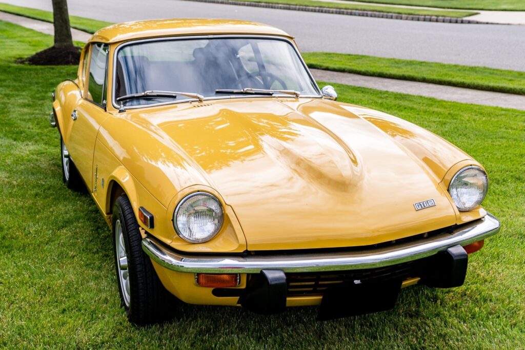 This 1972 Triumph GT6 is a Mk III example that was reportedly refurbished. Work is said to have included repainting the exterior in factory Saffron, replacing the carpet, and overhauling the 1,998cc inline-six. Equipment includes a four-speed manual transmission, 13″ Minilite-style wheels, an aftermarket exhaust, and a Kenwood cassette radio with matching speakers. This GT6 is offered with removed factory parts, an uninstalled rebuilt overdrive transmission and related components, two sets of keys, a car cover, manufacturer’s literature, service records, and a clean title in the seller’s name.