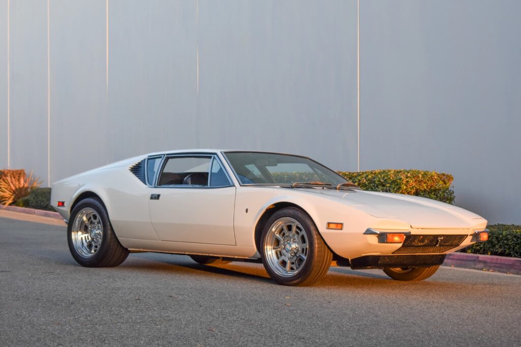 This 1973 DeTomaso Pantera L was refurbished after it is said to have spent approximately 28 years in storage. The car is powered by a 351ci V8 paired with a five-speed manual transaxle. Finished in white over black upholstery, the car features Pre-L chrome bumpers, 17″ Campagnolo-style wheels, air conditioning, power windows, a gated shifter, a MOMO Indy steering wheel, and a push-button radio with an aftermarket audio system. The engine was reportedly rebuilt 5 year ago.