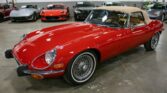 Paint is in nice shape, has a good shine to it. Powered by the SOHC 5.3L V12 that is paired with a manual transmission. This is a NUMBERS MATCHING Jaguar! Riding on spoke knock off wheels with white wall tires.Tool for knock off wheels is in the trunk. Front disc brakes are equipped as well. This has had a repaint along the way, appears to be painted the same as the original color. Interior appears to be original…