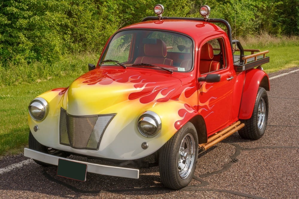 This might be the perfect car to take the grandkids to get ice cream in and cement your status as coolest grandfather in the neighborhood.This modified VW Beetle looks like few others – the front cab is mostly stock but the nose, frunk lid and rear section are all changed.