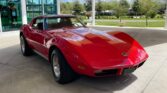 Sharp Chevrolet Corvette Stingray with 350 V8 and automatic transmission. Features headers, chrome intake, 4-barrel carb, and 4-wheel disc brakes. Equipped with AC, power steering, and power windows. Finished in bright red with T-Tops, polished wheels, and a clean saddle interior. A strong-running, stylish classic ready to cruise.