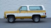 Replacement Fuel-Injected 350ci V8; 700R4 4-Speed Automatic Transmission; Dual-Range Transfer Case; Two-Tone Yellow & White; Removable White Hardtop; Tan Upholstery; Aftermarket Stereo & Speakers; Updated Air Conditioning System; Refurbished Brakes & Suspension; 15″ Wheels; BFGoodrich All-Terrain Tires; Refurbishment Records