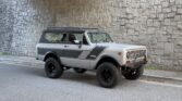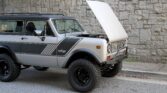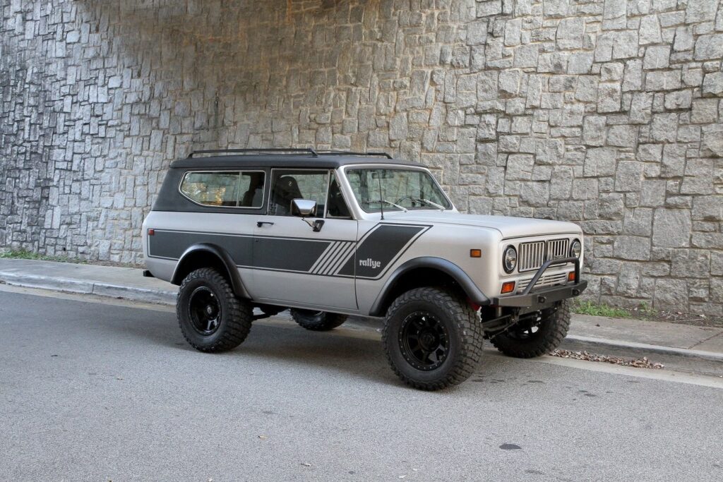 1974 International Scout II finished in matte silver with black rallye stripe, lift kit, and aggressive stance. Powered by a 345 V8 with Edelbrock carb and upgraded ignition, paired with automatic transmission and 4WD. Features Corbeau seats, rhino-lined interior, modern stereo, LED headlights, and custom bumpers. A rugged, well-equipped classic that runs and drives great.