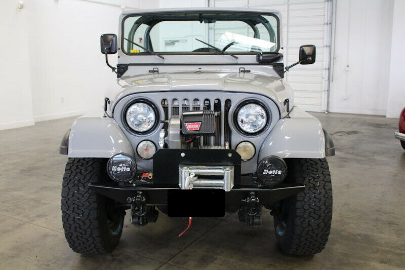 This amazing classic for sale is gorgeous Jeep CJ5 Renegade 2 Door Convertible with spectacular grey exterior paint and a black vinyl interior. You will find an AMC 401 cid V-8 engine under the hood with a Holley 670 cfm carburetor and a T-18 four speed transmission, Dana front rear axles, Warn accessories and so much more.Just check out the partial build sheet below to get an idea of the tremendous overall quality:Balanced AMC 401 cid V-8 w ISKY 256 super cam,T-18 4 speed transmission, Holley 670 cfm carburetor