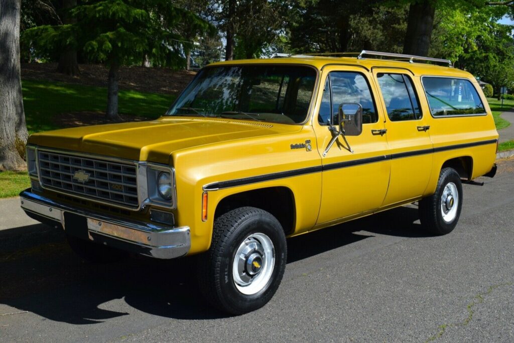 UNRESTORED ORIGINAL PAINT SURVIVOR; 90,900 ORIGINAL AUTHENTIC MILES; BEAUTIFUL & STRIKING ORIGINAL YUBA GOLD PAINT WITH SPOT WORK; GARAGED KEPT MOST OF IT’S LIFE AND IT SHOWS; VERY LOW PRODUCTION NUMBERS OF THE SUBURBAN K-20 4X4 IN THE 1970’S ( PROBABLY THE RAREST MODEL ); INCREDIBLE ORIGINAL INTERIOR AND STILL SMELLS LIKE NEW; STUNNING ORIGINAL SADDLE PLAID PATTERN SEATS IN BEAUTIFUL CONDITION; BEAUTIFUL ORIGINAL DASH WITH NO CRACKS; THE UNDERCARRIAGE IS ORIGINAL AND UNRESTORED AND IN AMAZING CONDITION; THE UNDER BODY FLOORS HAVE BEAUTIFUL ORIGINAL RED OXIDE PAINT; THE ORIGINAL BLACK FRAME PAINT IS REMARKABLE AS WELL AS OTHER COMPONENTS; THE UNDERCARRIAGE IS ONE OF THE BEST ORIGINALS I HAVE EVER SEEN ON AN OLDER VEHICLE; HAS MANY ORIGINAL CHALK MARKS, STENCILS, PAINT DABS, LABELS AND STICKERS; MANY PIECES OF ORIGINAL FACTORY DELIVERED PAPERWORK; MANY ORIGINAL SERVICE RECORDS & EMISSIONS REPORTS WITH MILES DOCUMENTED; ORIGINAL FACTORY BUILD SHEET; ENGINE COMPARTMENT IS ALL ORIGINAL EXCEPT A BEAUTIFUL ENGINE REPAINT AND THE ALTERNATOR BRACKET; ALL ORIGINAL ENGINE COMPARTMENT BLACK APRONS, FRAME, CORE SUPPORT, ETC ARE ALL ORIGINAL; THE JACK AND ACCESSORIES ARE ALL PRESENT. THIS VEHICLE RUNS EXTREMELY SMOOTH AND STRONG. THIS VEHICLE DRIVES VERY TIGHT AND RESPONSIVE. THE TRANSMISSION SHIFTS VERY WELL.